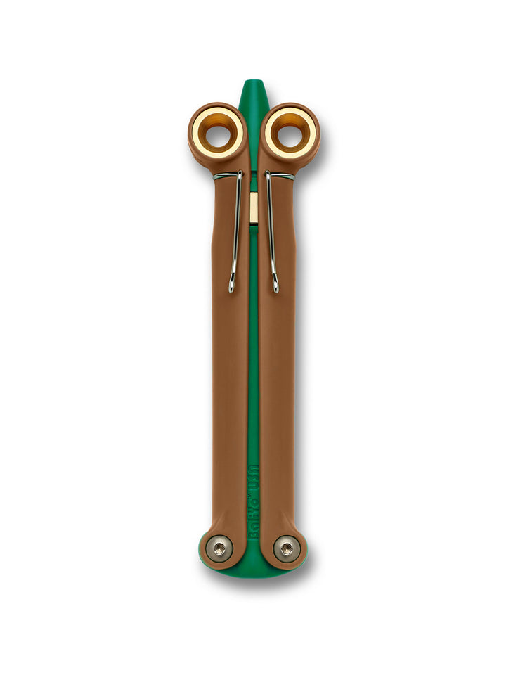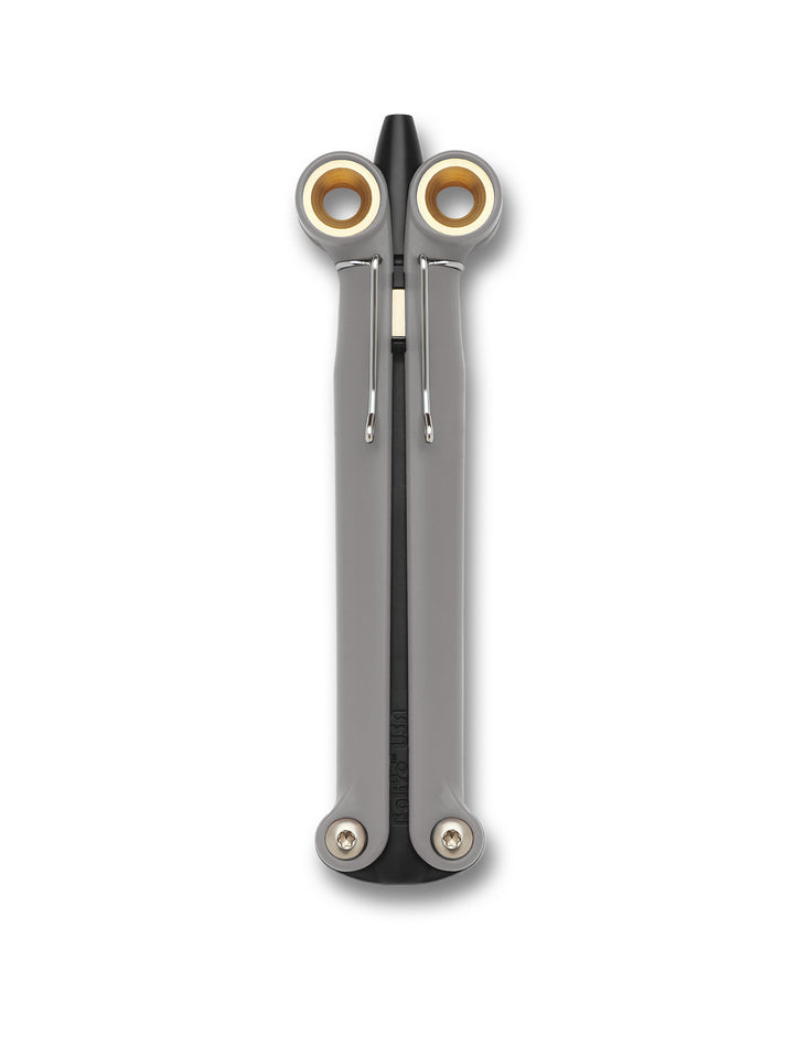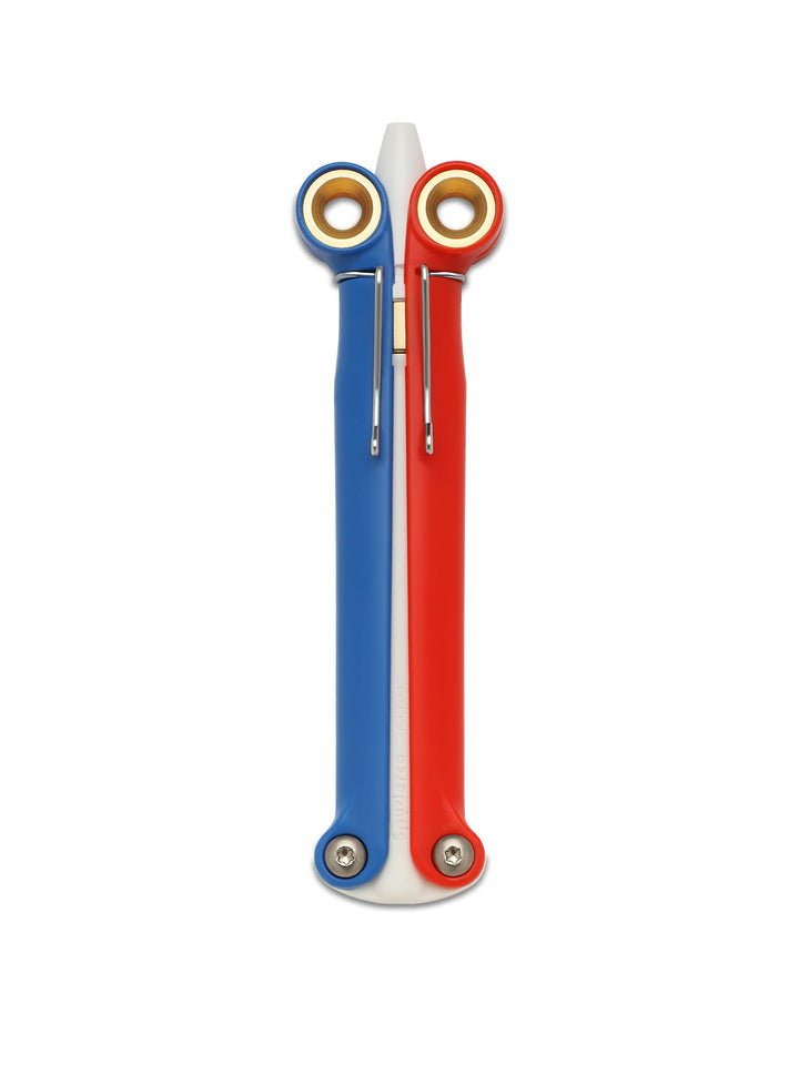 Spyderco’s USA-made heavy-duty BaliYo design features a high-impact central body with a retractable pressurized Fisher® Space Pen® cartridge that makes it a world-class writing instrument. The pen body is flanked by two custom-formulated polymer handles that each rotate 180 degrees on low-friction stainless steel pivots. These weighted, precision-balanced handles can be flipped, swung, twirled, and spun in a variety of patterns, transforming this everyday writing tool into a fun and challenging game of skill.