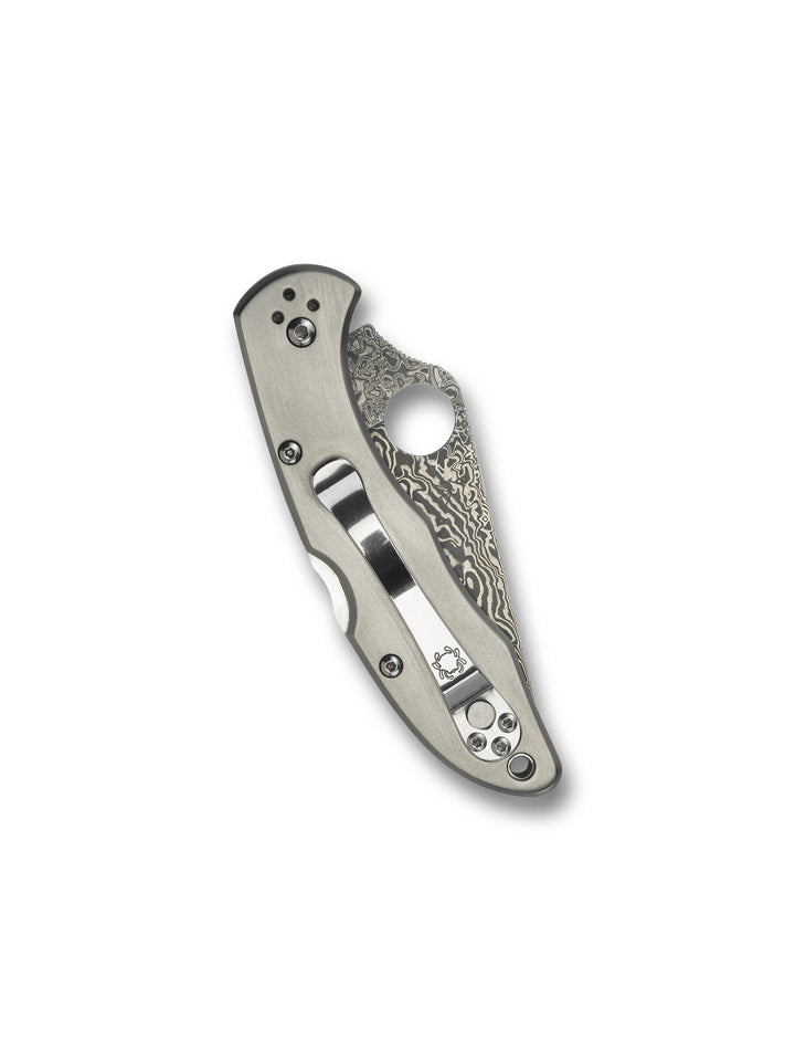 The Delica® is one of Spyderco’s oldest and most popular designs. A mainstay of our product line since its release in 1990, it seemed fitting to honor the critical role it has played in Spyderco’s history with a full-production premium version of this iconic design. The result is the Titanium/Damascus Delica 4, an exquisite expression of the classic Delica that offers the best of old-world craftsmanship and state-of-the-art materials.