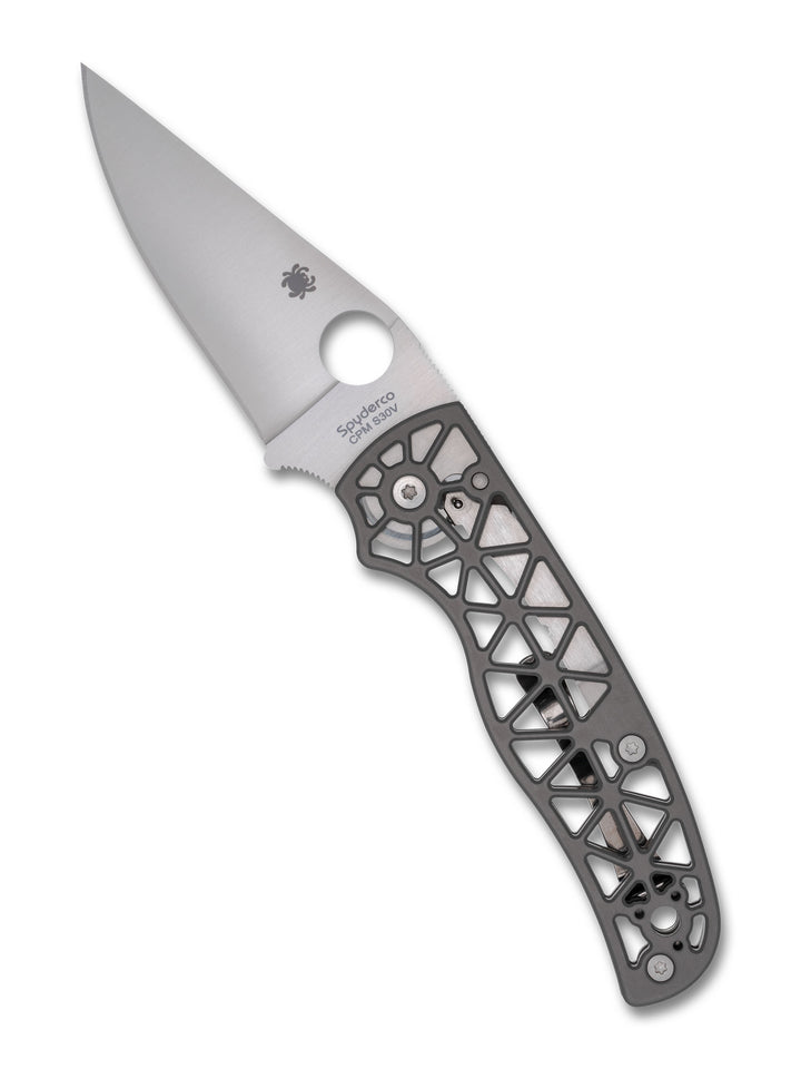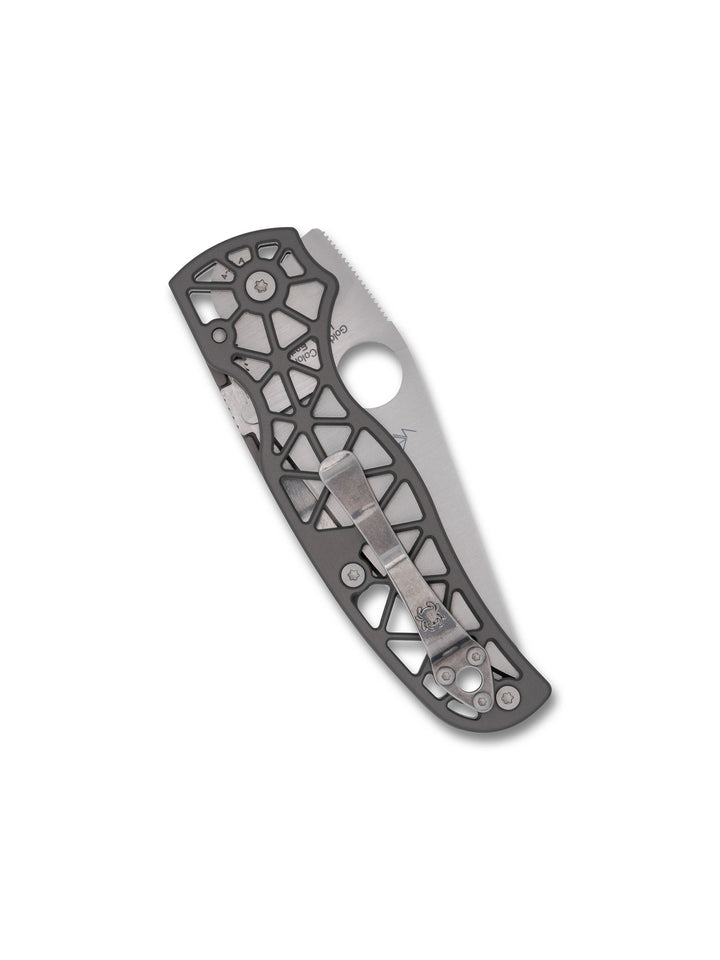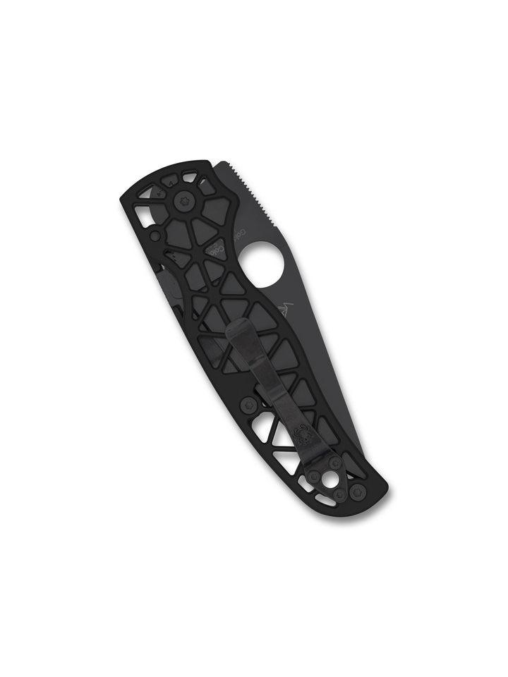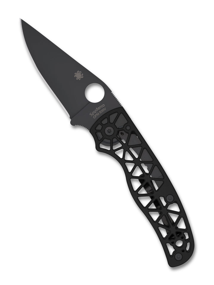 The brainchild of Spyderco co-founder Sal Glesser, the Edgerati™ translates his deep interest in high-performance sports cars into a remarkable knife design. Its pierced, geometric handle was inspired by the frame of the legendary “birdcage” Maserati, which revolutionized sports car design. True to that spirit, the Edgerati’s handle scales are painstakingly machined from solid aircraft-grade aluminum and hardcoat anodized to create an exceptional blend of strength, light weight, non-slip texture, and dramatic style. They also provide a view of the knife’s streamlined Compression Lock® mechanism, which consists of a stainless steel lock bar nested into a machined pocket in the obverse-side scale. The knife’s straight-spined, full-flat-ground blade is crafted from CPM® S30V® particle metallurgy stainless steel and features a textured index-finger choil that allows a forward-positioned grip for enhanced control. Its broad-based pocket clip is reversible for left or right-side tip-up carry and complements the blade’s fully accessible Trademark Round Hole™ to allow swift, positive deployment with either hand. The Edgerati is available with a satin-finished blade and brightly finished hardware and in an all-black configuration featuring a Diamond-Like Carbon (DLC) blade coating, black anodized scales, and a matching black-coated lock bar, clip, and hardware. Both finish options offer a choice of either a PlainEdge™ or fully serrated SpyderEdge™ blade.