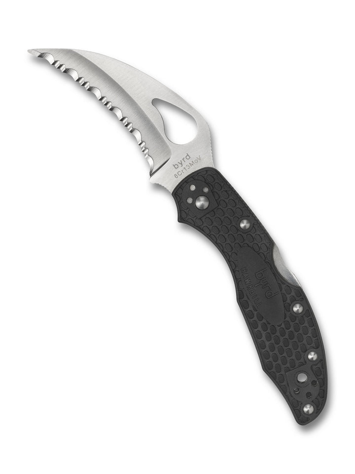 The Hawkbill byrd® combines the voracious cutting power of a hawkbill blade shape with the lightweight construction of an injection-molded FRN handle. The handle’s Bi-Directional Texture™ pattern guarantees a positive grip and its skeletonized stainless steel liners provide strength for a sturdy back lock mechanism. A four-position clip and the blade’s trademark “Comet Hole” allow you to bring the blade into action quickly from a full range of carry positions.