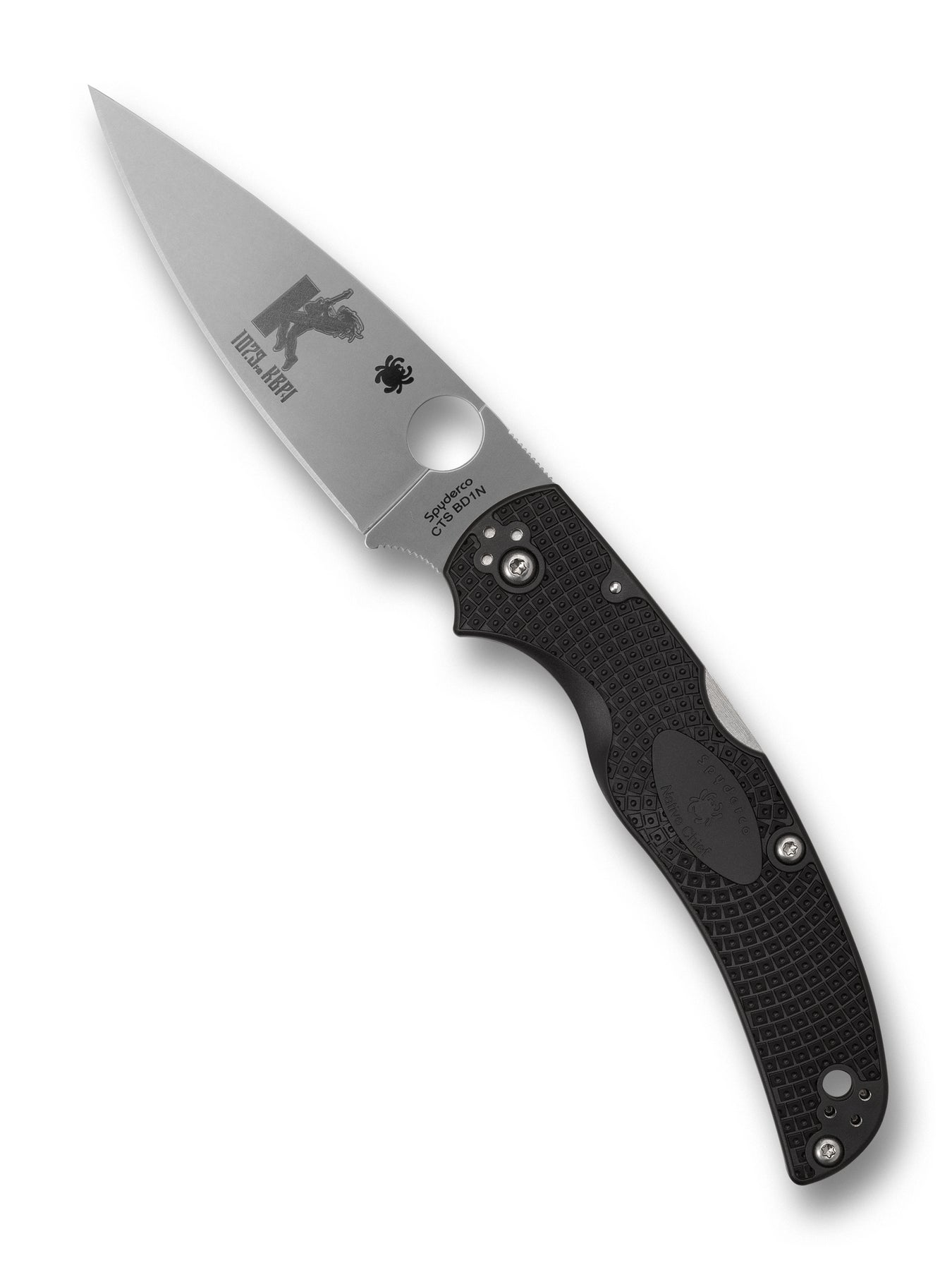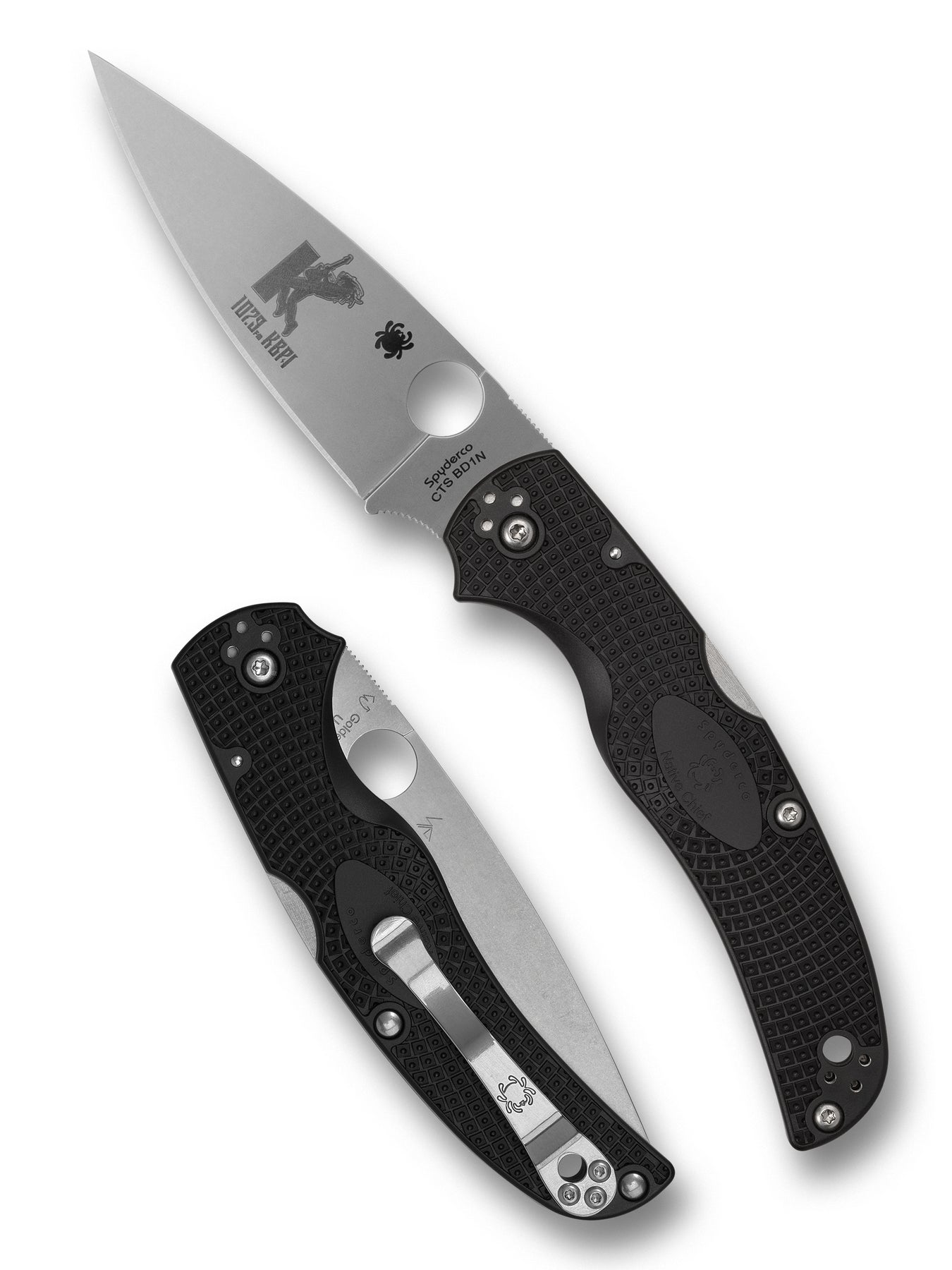 This limited-edition collectible version of Spyderco’s Native Chief Lightweight is proudly laser engraved with the KBPI “K-Man” logo. Its injection-molded fiberglass-reinforced-nylon (FRN) handle includes a high-traction Bi-Directional Texture™ pattern for an ultra-secure grip. Twenty-one percent lighter than its G-10-handled counterpart, its linerless handle boasts the same precision-machined back lock mechanism and four-position pocket clip to support left or right-side, tip-up or tip-down carry. The tumble-finished blade of this knife is full-flat-ground from CTS® BD1N stainless steel and features a fully accessible Trademark Round Hole™ to complement the knife's symmetrical, completely ambidextrous design. Proudly manufactured in Golden, Colorado, this unique expression of the Native Chief Lightweight is available for a limited time only, so act now.