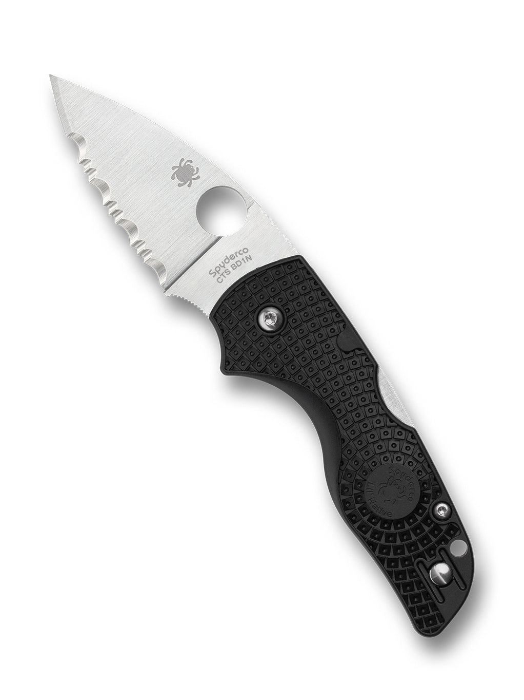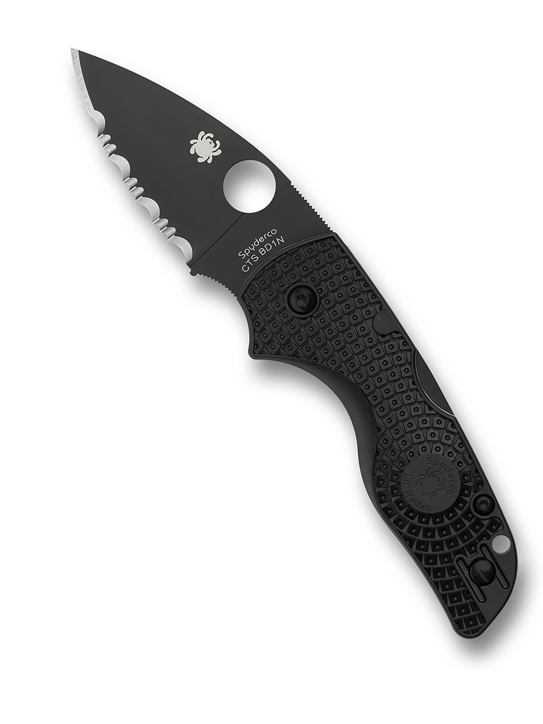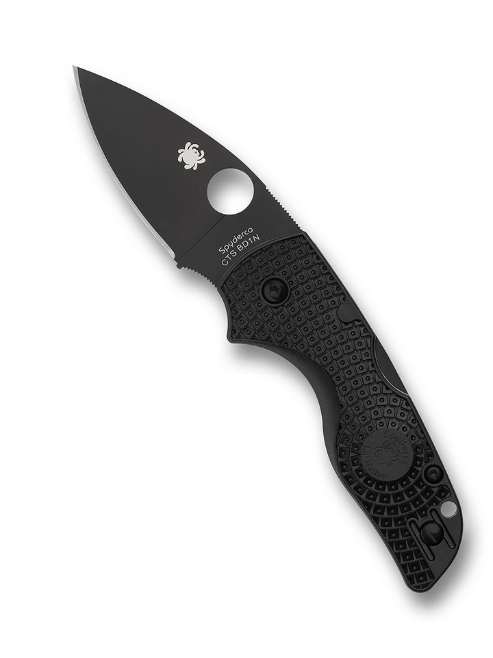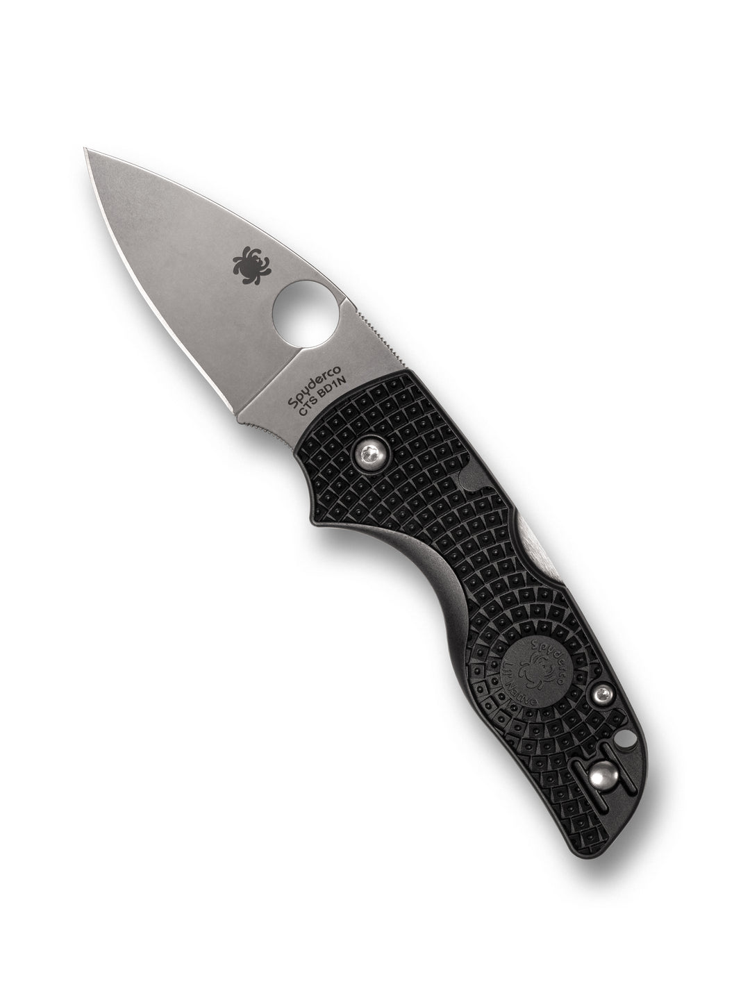The original Lil’ Native® was created to provide the same proven functionality and reliability as our iconic Native model in an ultra-compact package with a legally friendly 2.42-inch blade. Continuing that evolution, Spyderco is proud to offer the Lil’ Native Lightweight. This remarkable folding knife takes the Lil’ Native Back Lock platform and lightens it by 40 percent with fiberglass-reinforced-nylon (FRN) handle scales. The injection-molded scales add the enhanced grip security of a Bi-Directional Texture™ pattern and are home to a reversible deep-pocket wire clip that provides discreet left or right-side tip-up carry. The business end of the knife is a full-flat-ground CTS® BD1N stainless steel blade with a fully accessible Trademark Round Hole™ for easy one-handed opening with either hand. This ultra-lightweight cutting tool is available with a tumbled blade finish and brightly finished hardware or in an all-black configuration featuring a Diamond-Like Carbon (DLC) blade coating and matching black-coated lock bar, clip, and hardware. Both finish options also offer a choice of either a PlainEdge™ or fully serrated SpyderEdge™ blade.