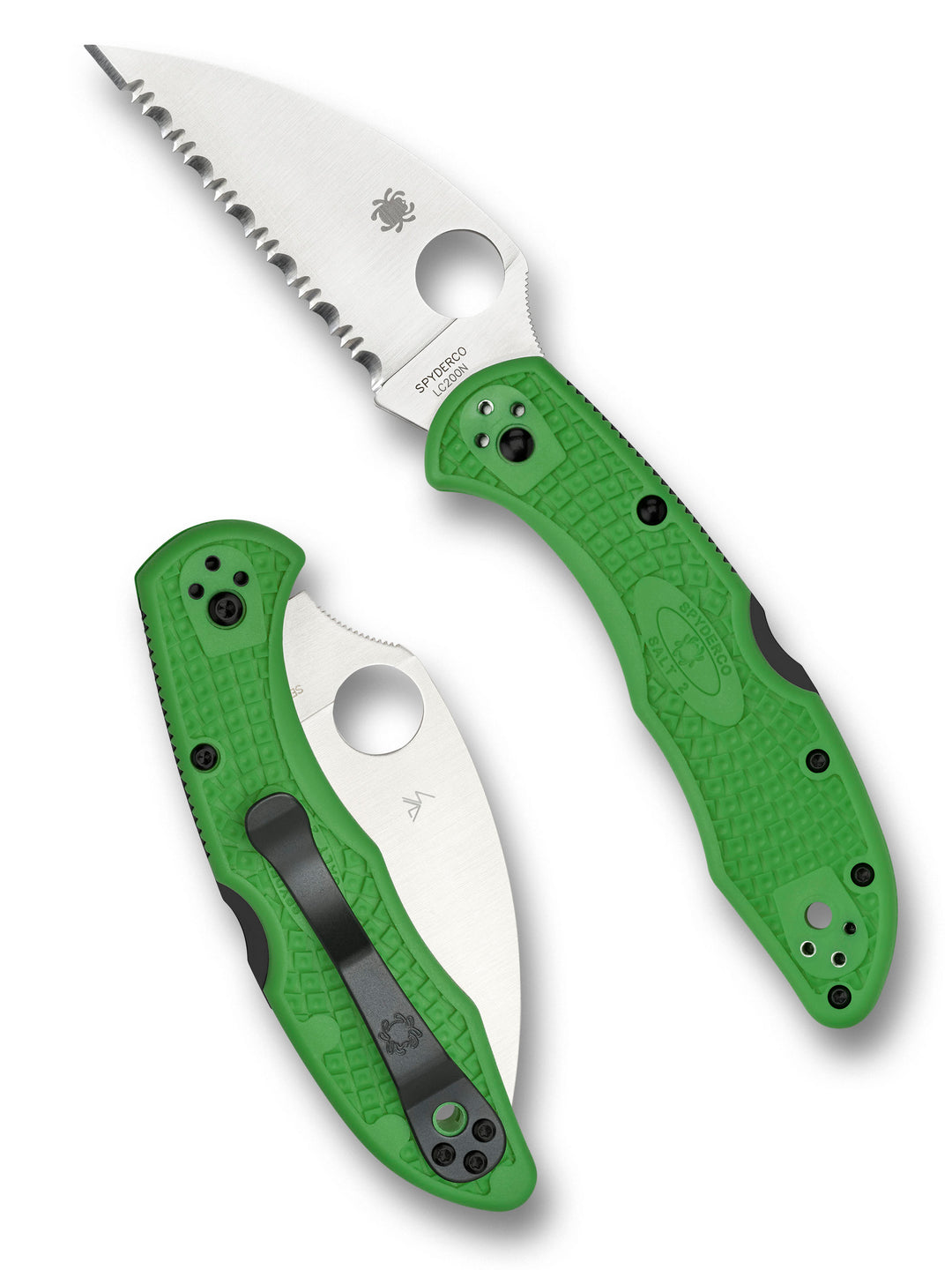 This expression of the Salt 2 showcases a full-flat-ground Wharncliffe-style blade crafted from LC200N martensitic blade steel. This nitrogen-enriched alloy offers both exceptional resistance to corrosion and excellent edge-holding properties. Available in both PlainEdge™ and fully serrated SpyderEdge™ formats, the perfectly straight cutting edge of its Wharncliffe blade allows it to cut with both scalpel-like precision and impressive power. This remarkable cutting tool also features a high-visibility green handle color that is a signature of Spyderco’s LC200N family.