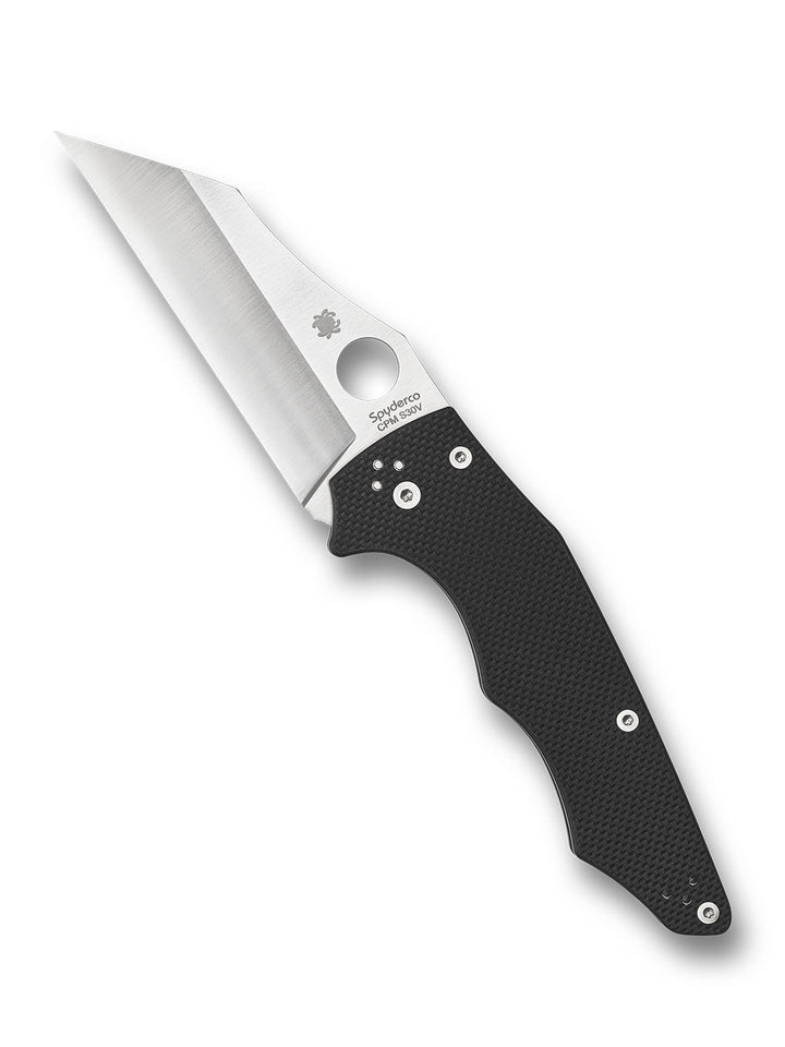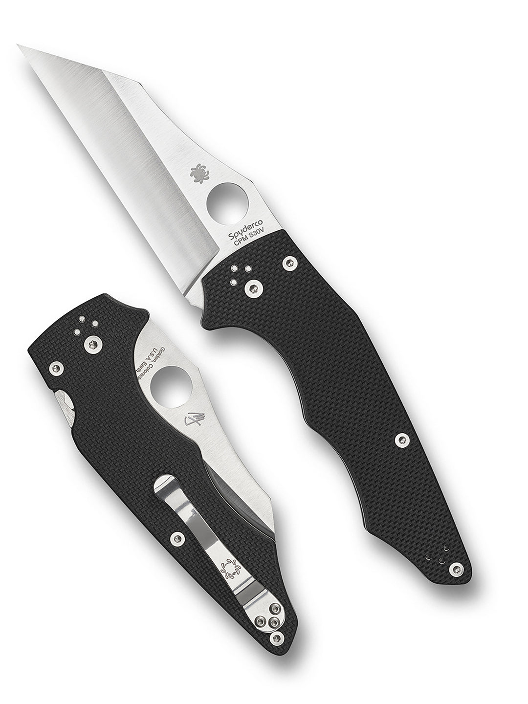 The YoJumbo’s formidable four-inch (102mm) Wharncliffe blade is hollow ground from CPM® S30V® stainless steel for superior edge geometry and features a fully accessible Trademark Round Hole™ for swift, ambidextrous, one-handed opening. Its handle showcases easy-to-clean, open-backed construction and nested, skeletonized stainless steel liners. These features keep the knife’s weight to a minimum, while its coarse-textured G-10 scales promote a secure, non-slip grip. The liners also form the foundation of its high-strength Compression Lock® mechanism and anchor its four-position pocket clip, which is configurable for tip-up or tip-down carry on either side of the body. A truly formidable cutting tool optimized for personal-defense use, the YoJumbo is available with a satin-finished blade and brightly finished hardware and in an all-black configuration with a Diamond-Like Carbon (DLC) blade coating and black-coated liners, clip, and handle hardware.